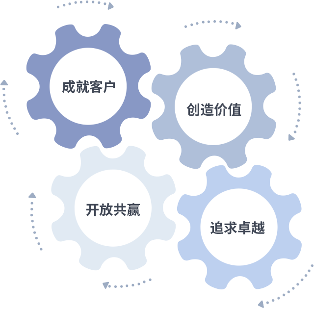 成就客户是一切决策的出发点,,,,创造价值是衡量所有工作的标准,,,追求卓越是asiagame做事做人的态度,,,,开放共赢是asiagame的格局也是最终的结果。。。。价值观的齿轮环环相扣,,推动着组织里的每个人不断向前。。